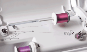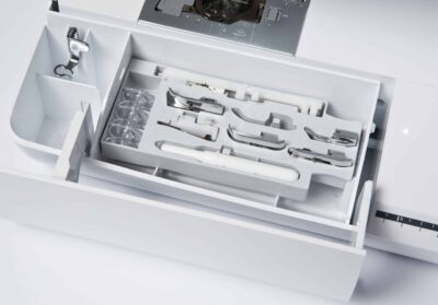 Facilité : Système perfectionné d’enfilage de l’aiguille (extra-avancé) et mise en place rapide de la canette.